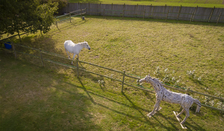 Accueil des chevaux en paddock ou prairies, mise à disposition d’eau et clôtures électrifiées.